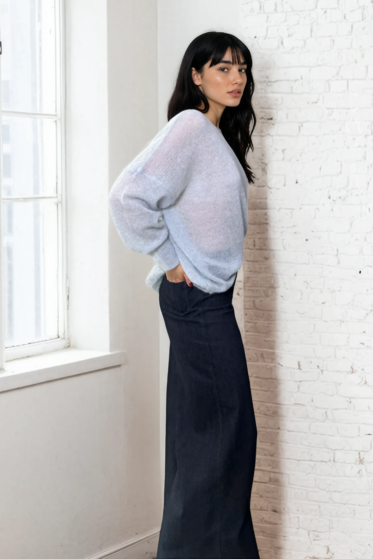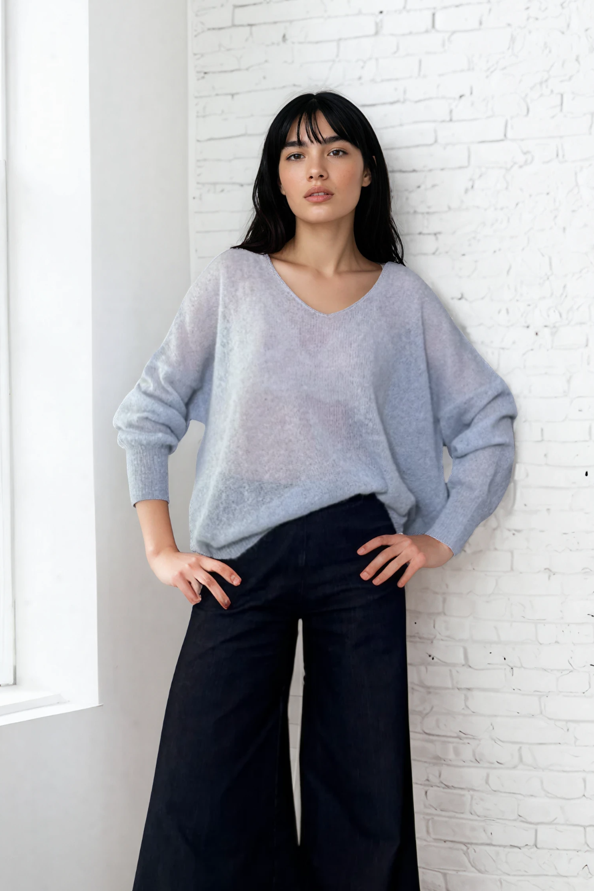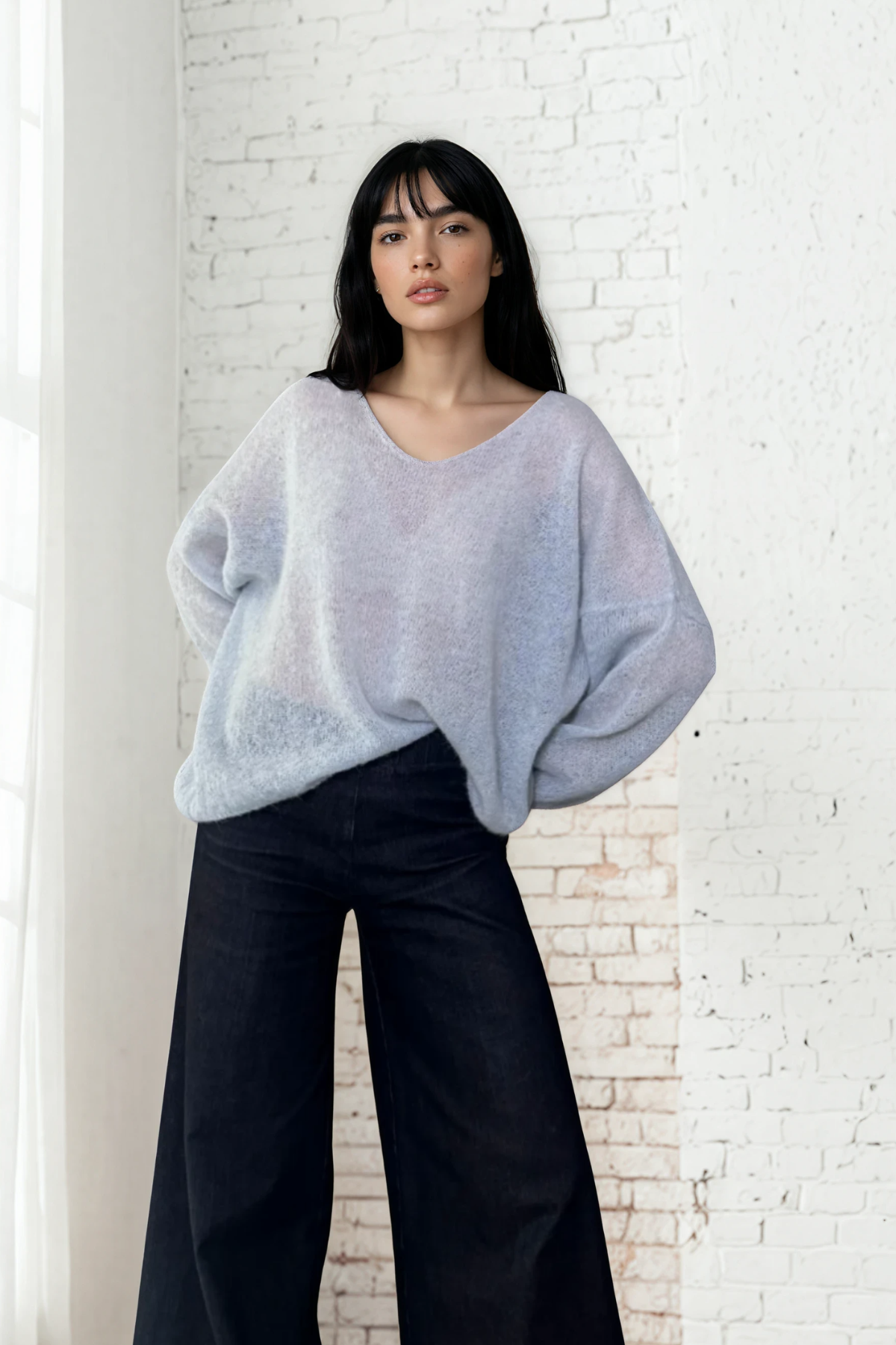 Il Pull Nuvola è realizzato in un prezioso blend di alpaca e mohair, per un effetto soffice e leggero sulla pelle. Il fit morbido e il design essenziale lo rendono il capo perfetto per ogni occasione, dalla quotidianità a momenti più speciali.